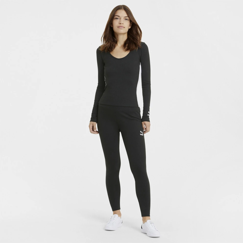 Γυναικεία Puma Classics High Waist Ribbed Γυναικείο Κολάν PUMA BLACK