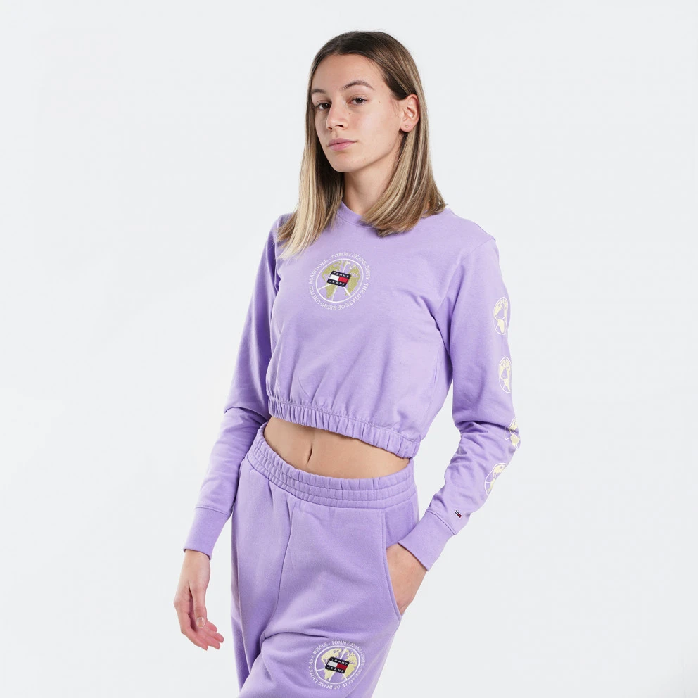 Γυναικεία Tommy Jeans Crop Elastic Unitees Γυναικείο Cropped Φούτερ VIOLET VIOLA