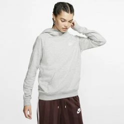 Nike Sportswear Essential Γυναικεία Μπλούζα με Κουκούλα DK GREY HEATHER/WHITE