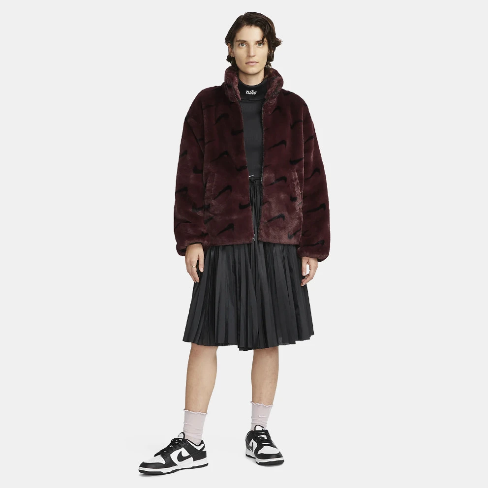 Nike Sportswear Plush Γούνινη Γυναικεία Ζακέτα BURGUNDY CRUSH/BLACK/BLACK