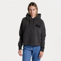 Superdry D1 Vintage Γυναικεία Μπλούζα με Κουκούλα BISON BLACK